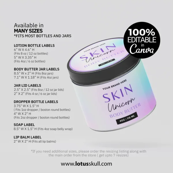 Unicorn Mist - Colorful Body Butter and Lotion Bottle Template Pack