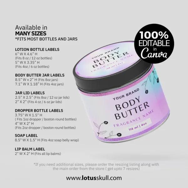 Skin Lust - Premium Cosmetic Label Template | Cream Jar Labels | Shea Body Butter