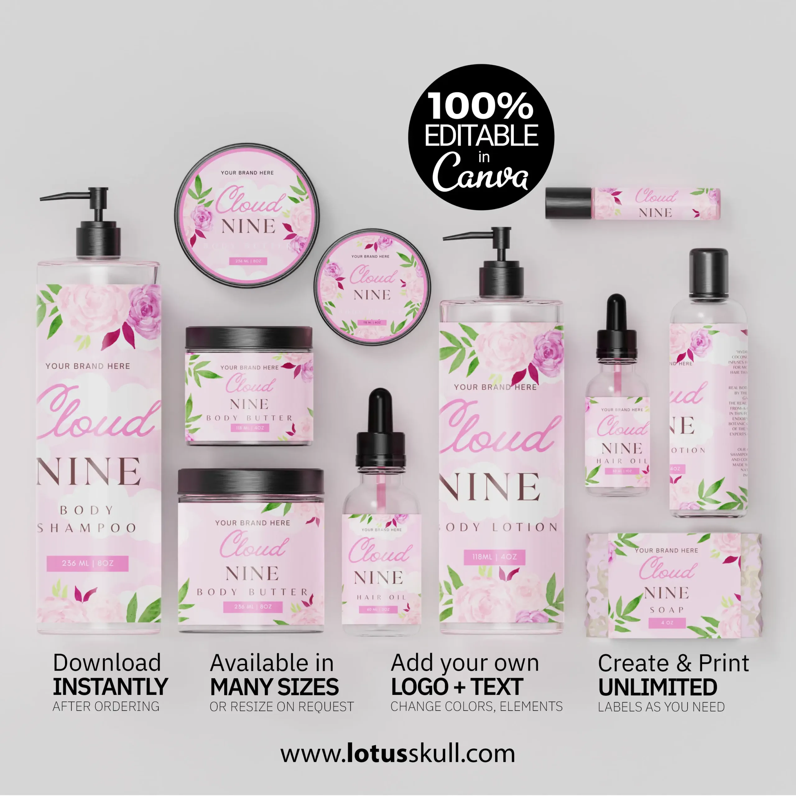 Be the first to review “Cloud Nine – Tropical Pink Floral Label Templates for Beauty Product Set | DIY Canva Labels”
