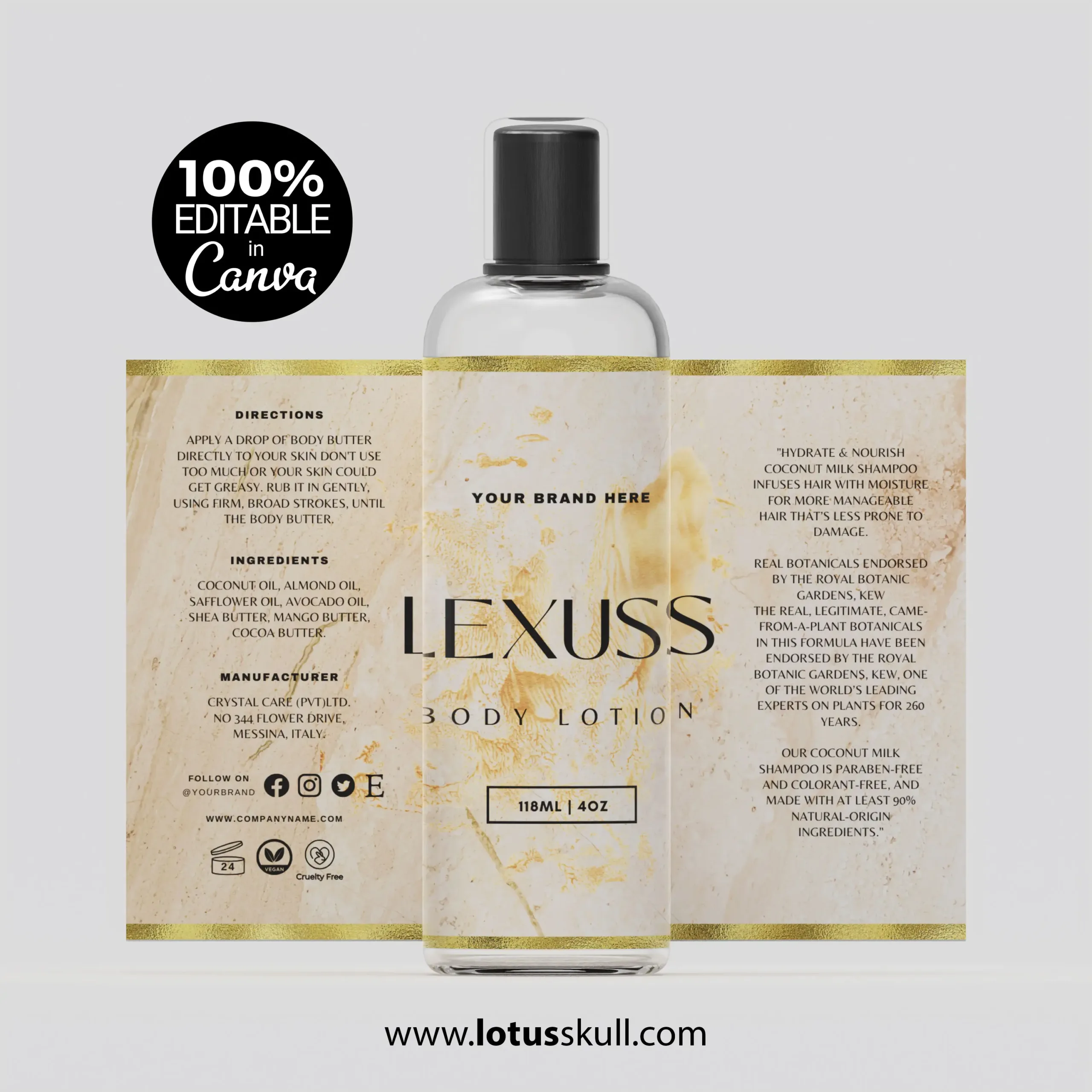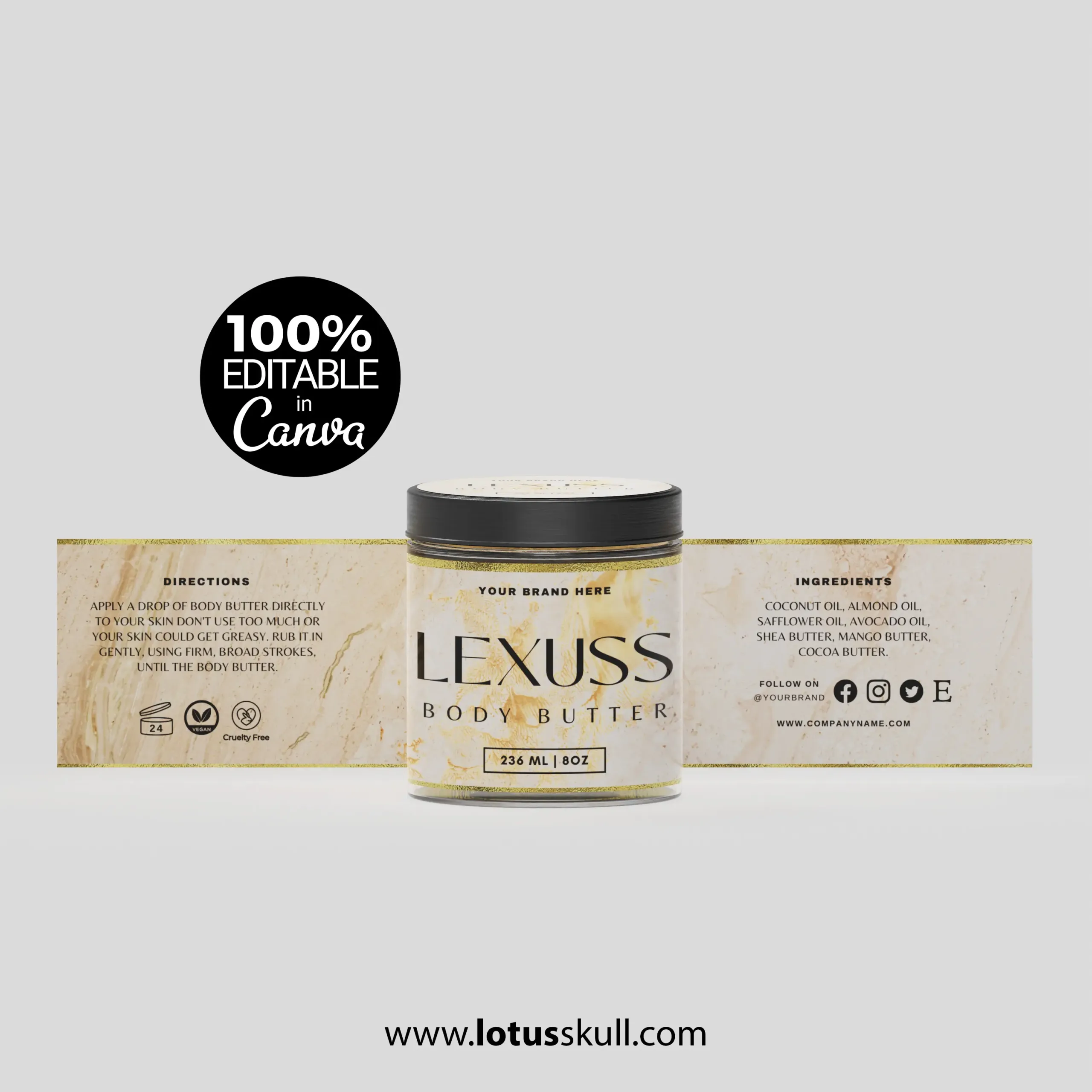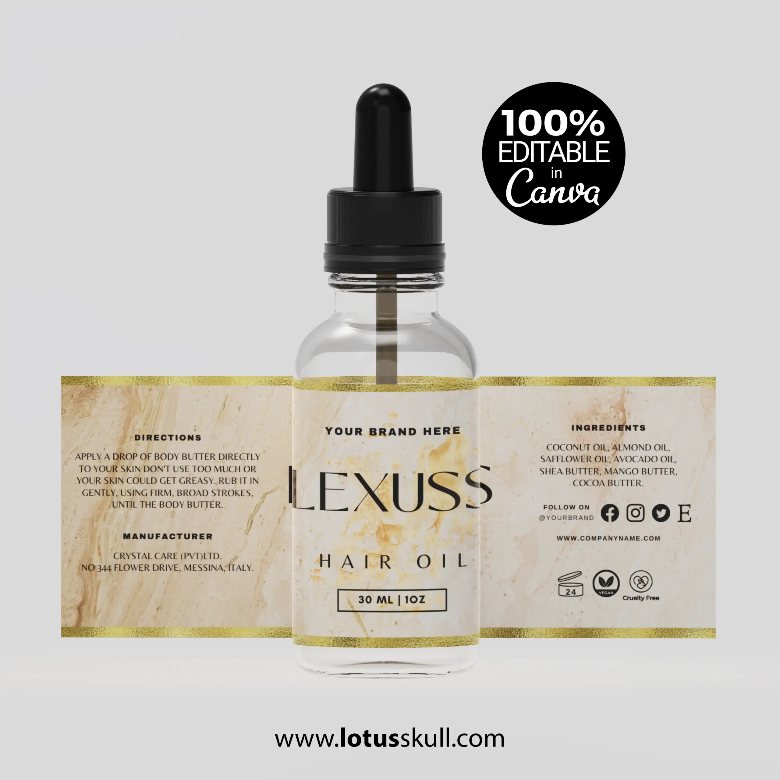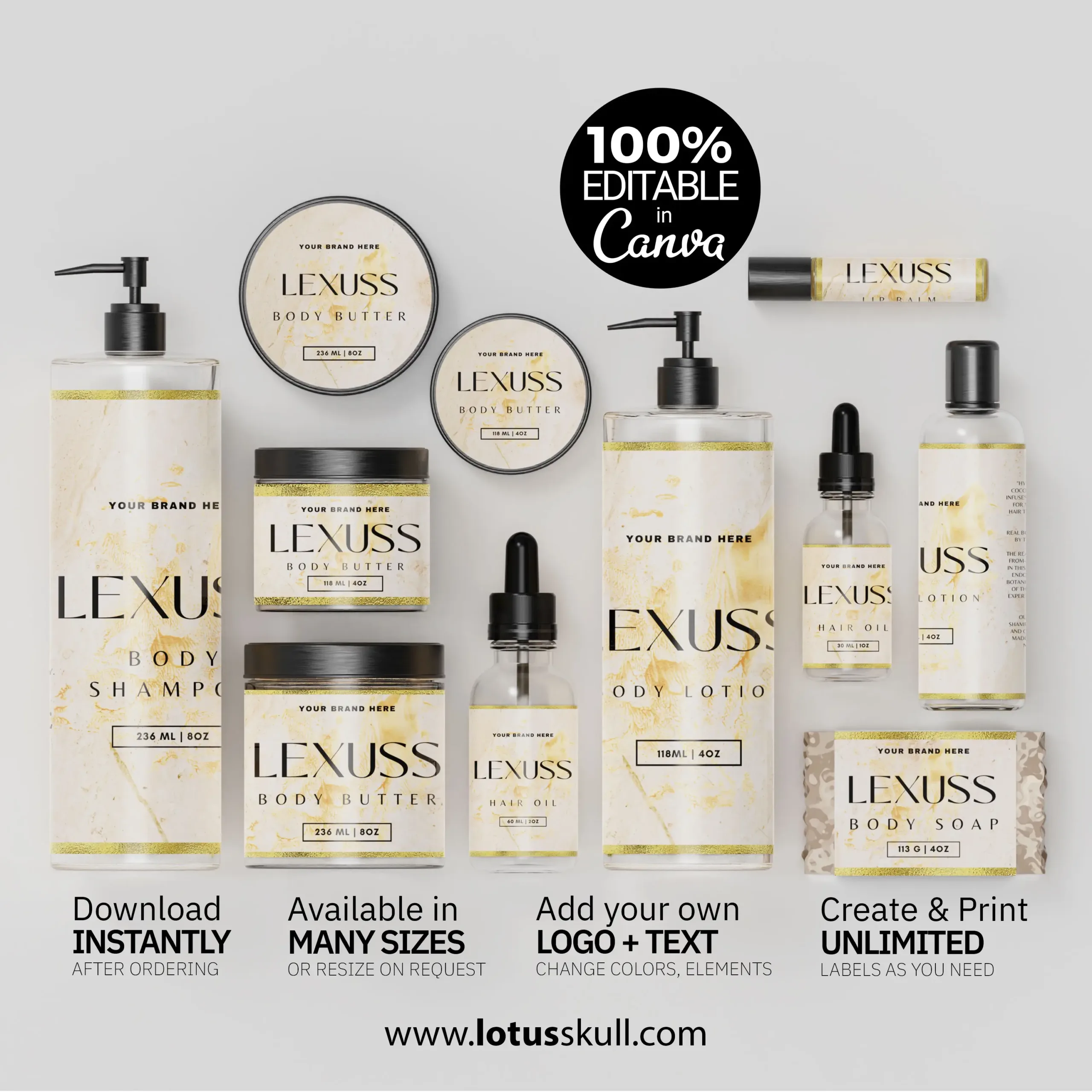 Elevate your skincare brand with the Lexuss – a premium set of DIY editable label templates designed for luxury cosmetics. Featuring a timeless marble texture and modern minimalist design, these templates are perfect for glass bottles, jars, and skincare packaging. Whether you’re launching a new product line or rebranding, these printable labels add a touch of elegance and professionalism to your cosmetics.
