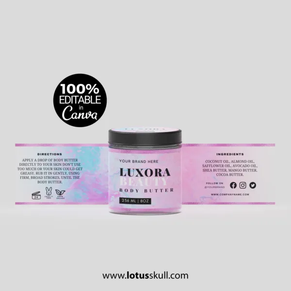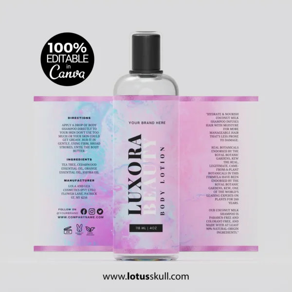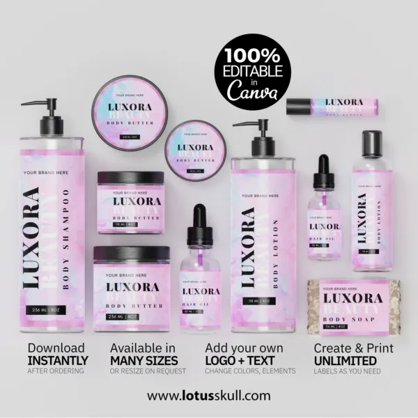 Be the first to review “Luxora Beauty – Vibrant Pink and Purple Skincare Label Template | Bodycare Label Templates”