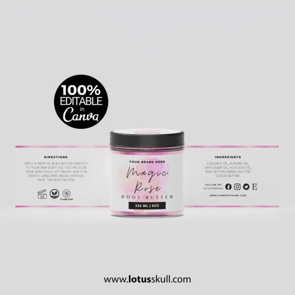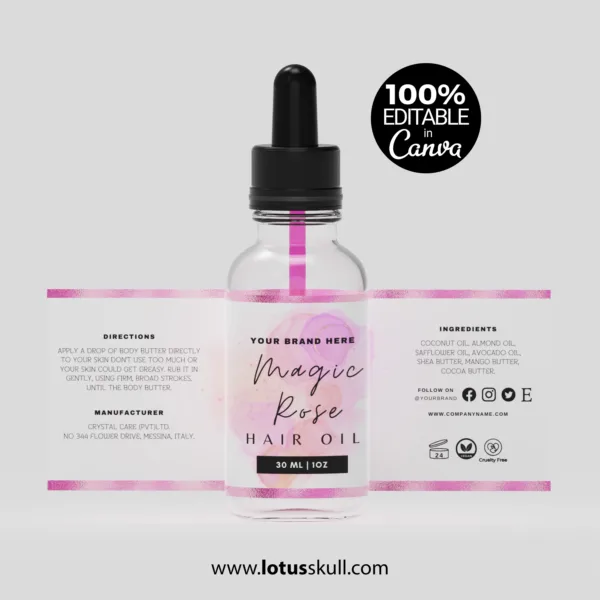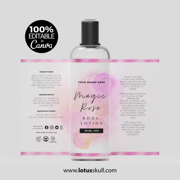 Elevate your skincare packaging with the Magic Rose – Watercolor Skincare Product Label Templates. Featuring soft, hand-painted rose illustrations in delicate watercolor tones, these editable label templates bring a touch of elegance and natural beauty to your products. Perfect for facial oils, creams, serums, soaps, and other skincare items, these labels are fully customizable in Canva or other design tools. Ideal for beauty brands, handmade businesses, and Etsy sellers looking to create a cohesive, professional look with ease.