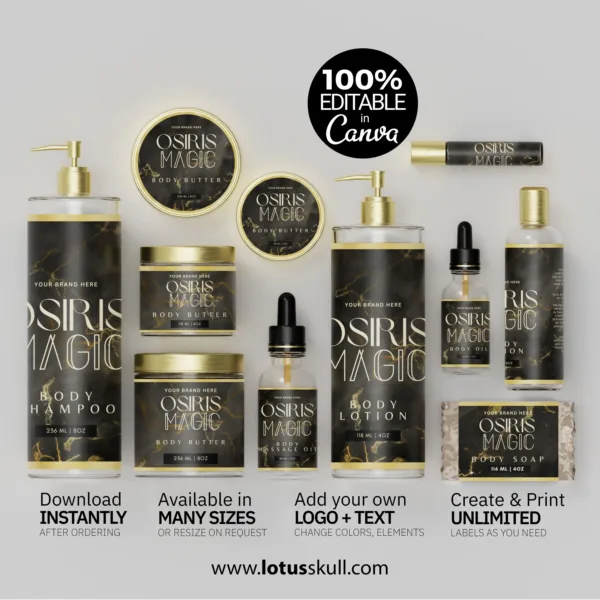 Be the first to review “Osiris Magic – Royal Skincare Label Templates | Self Editable Canva Labels”