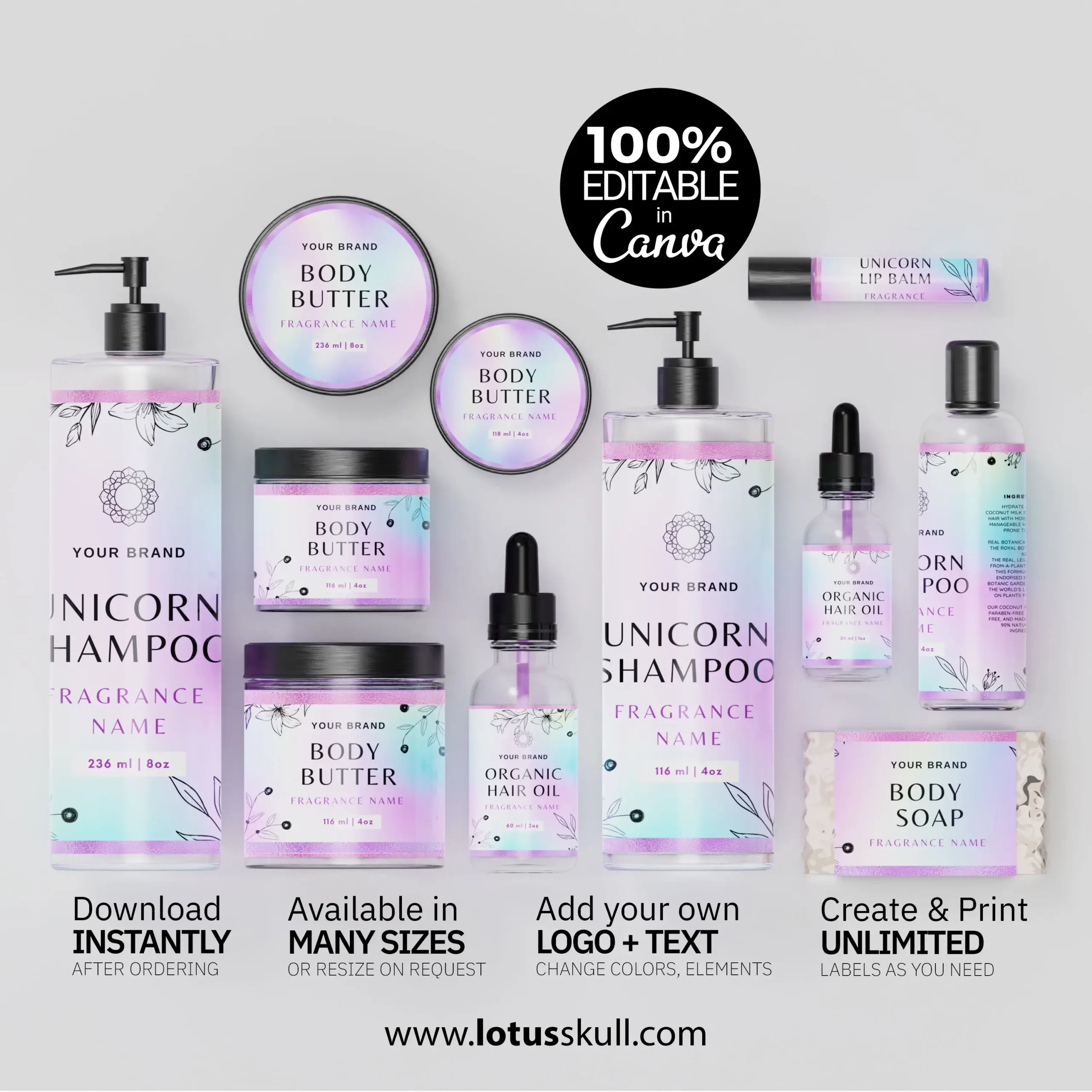 Be the first to review “Unicorn – Iridescent Skincare Product Label Templates | DIY Canva Label Designs”